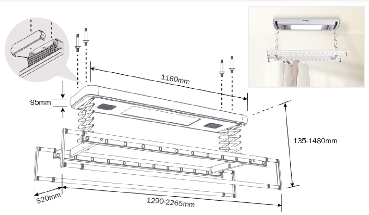 高效風乾及烘乾,晾衣不受天氣掣肘